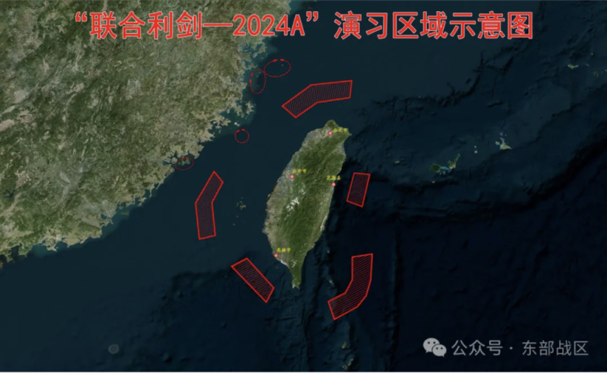 东部战区发布“集会利剑—2024A”演习区域示意图