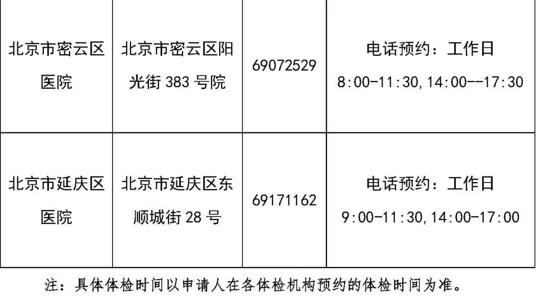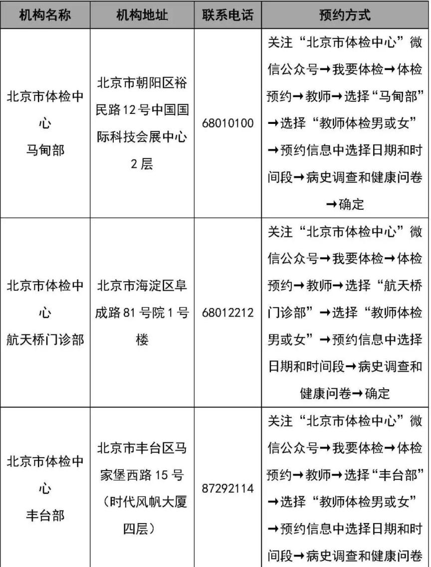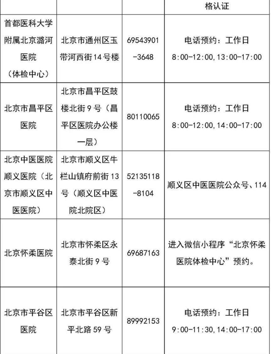 ????北京市教师经验认定体检机构名单