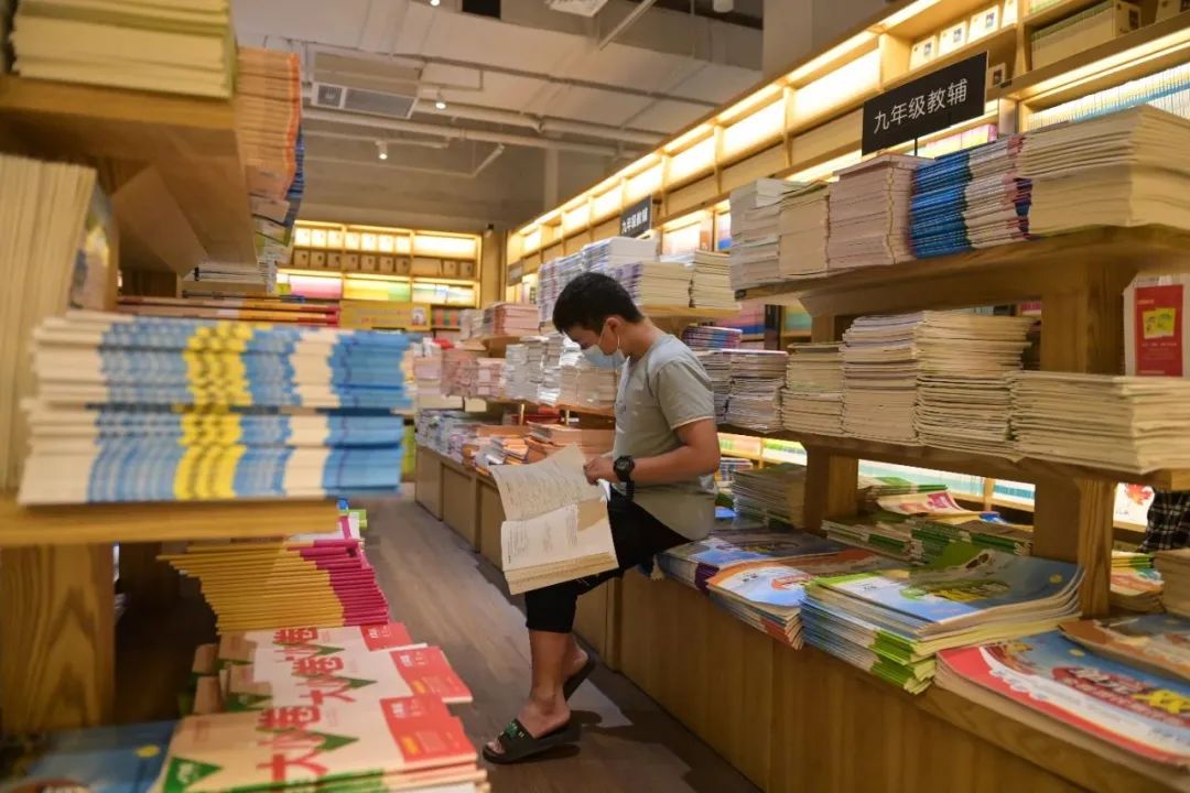 又名学生在书店内选购教辅贵寓 韩旭 摄